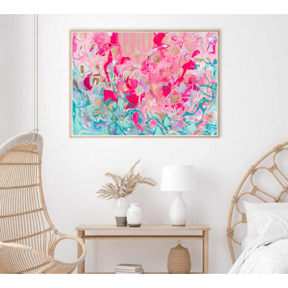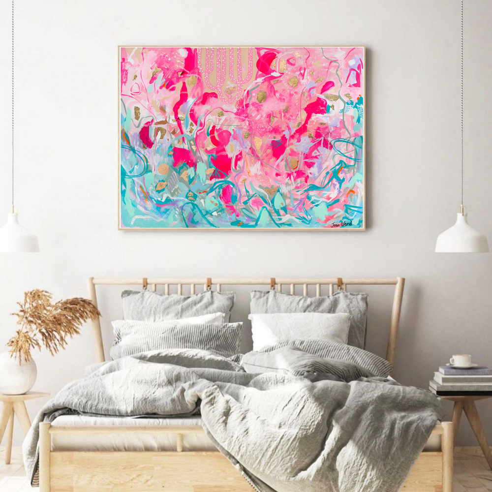 Joan has chosen to offer this print on premium quality Cotton Rag (paper) and Lustre Canvas. This allows for the highest quality print and maintains the essence, colour and energy that Joan’s work is known for. This high-quality exclusive print has been professionally crafted from an original Joan Blond Artwork. Joan’s original artworks feature a combination of acrylics with substance, as well as, oil and metallics with the incorporation of different mediums and washes